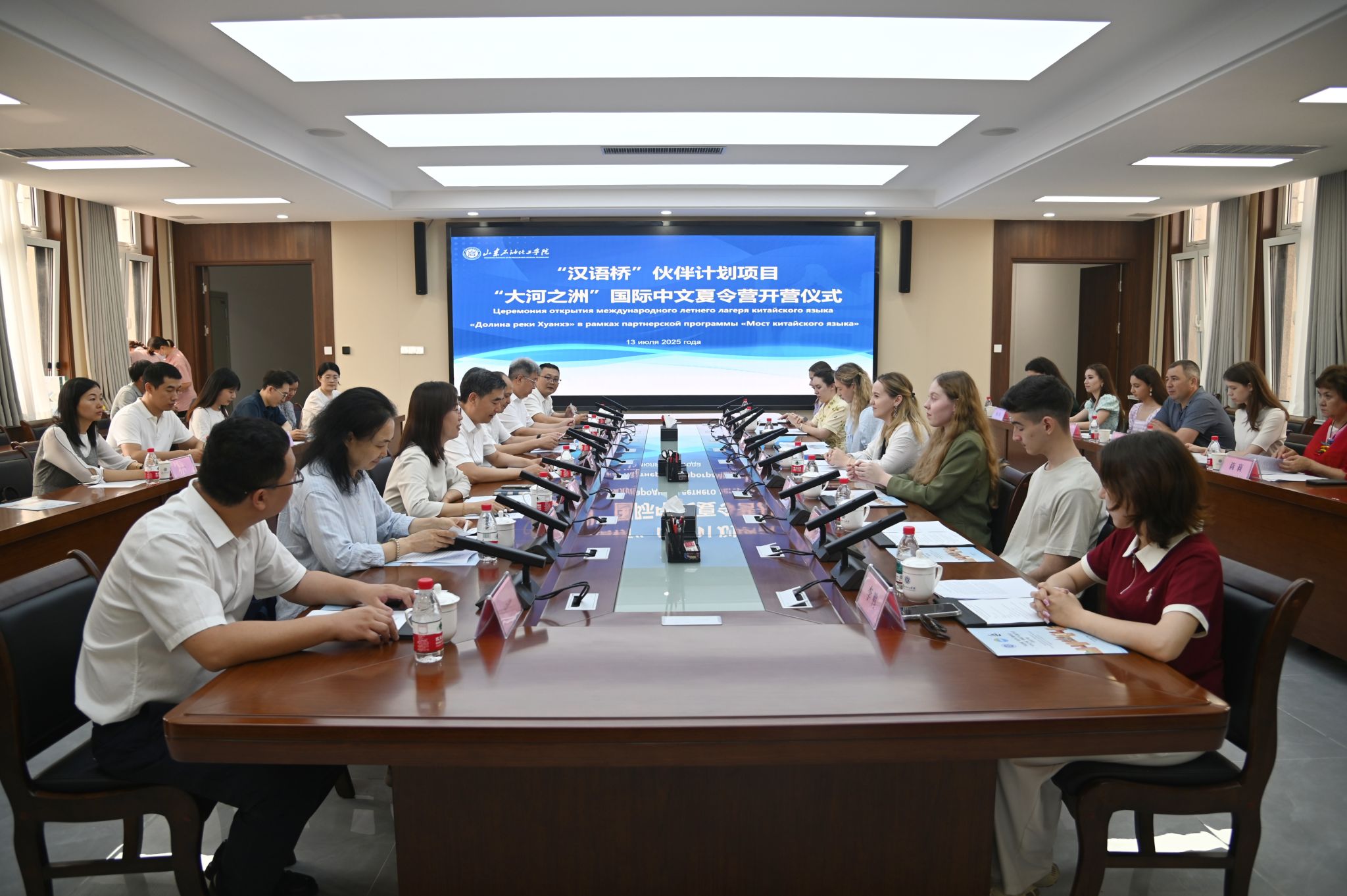 7月13日,由教育部中外语言交流合作中心主办、山东石油化工学院承办的2025年“汉语桥”伙伴计划项目——“大河之洲”国际中文夏令营正式开营,来自俄罗斯阿尔梅季耶夫斯克国立技术大学“高等石油大学”的14名师生应邀参加本次文化交流活动。校党委委员、副校长张思峰,东营市人民政府外事办公室党组成员、副主任任鸿飞出席开营仪式并致辞。