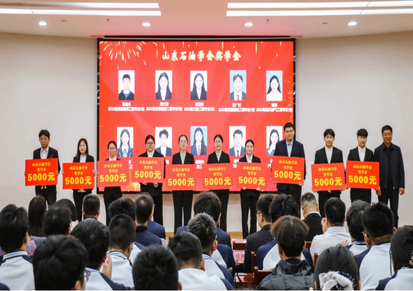 设奖单位嘉宾及学校相关单位负责人向韩淼析等72名同学(团队)颁发“胜利监理就业奖学金”“胜利监理创新创业奖学金”“胜利监理卓越奖学金”“山东石油学会奖学金”“渤海燃气奖学金”等5项企业奖学金,向乔英伟等6名教师颁发“胜利监理‘校企协同 就业育人’先进教师”。石油工程学院2022级资源勘查工程专业鲁成卓作为获奖学生代表发言。