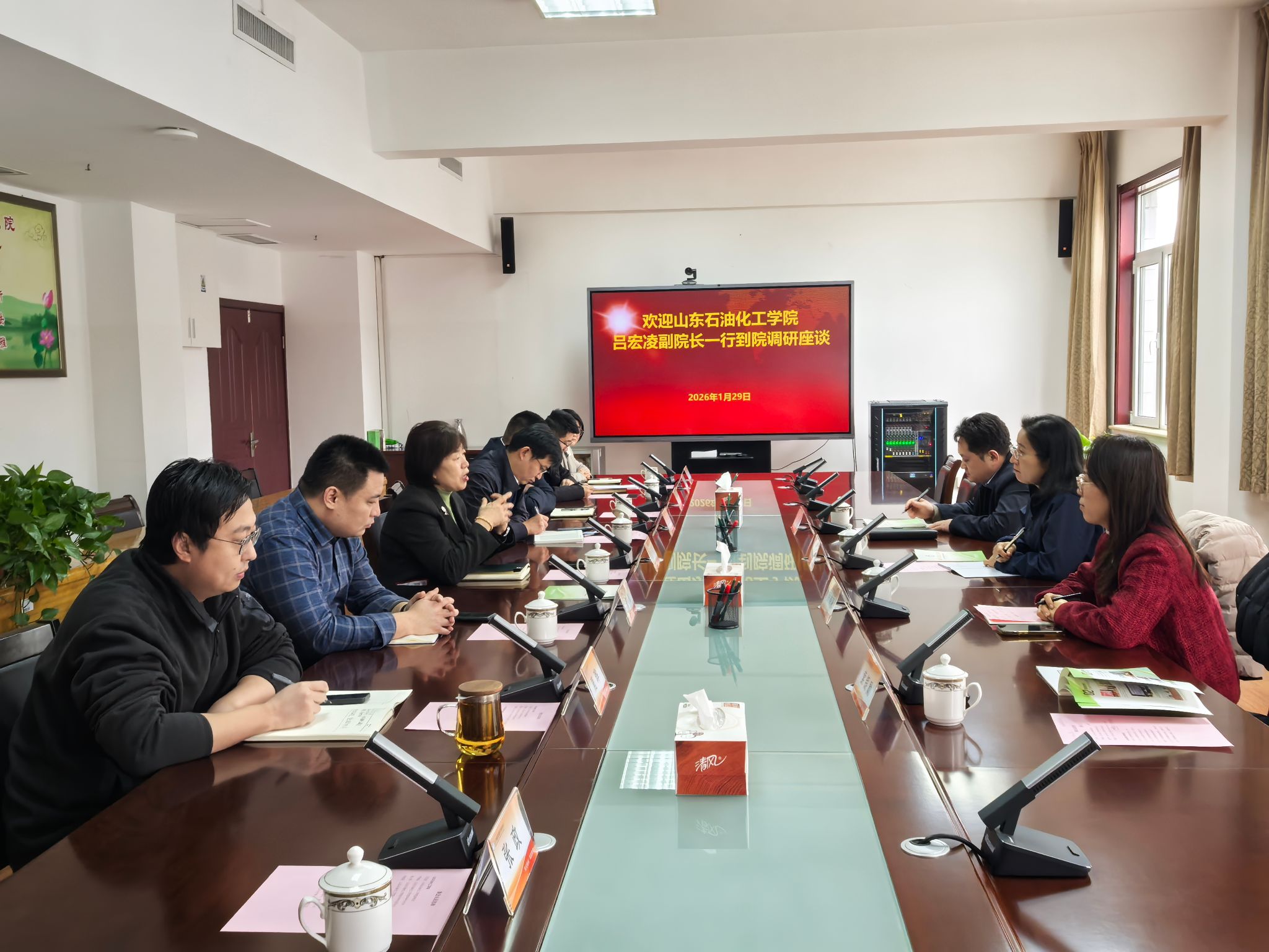 1月29日,党委委员、副校长吕宏凌带队赴山东省宏观经济研究院走访交流。山东省宏观经济研究院党委书记、院长张中英出席座谈。