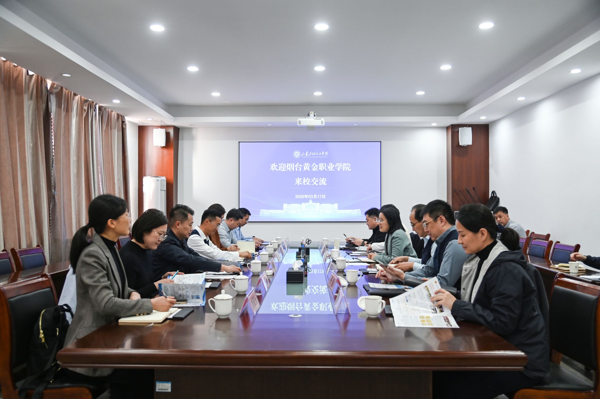 3月17日,烟台黄金职业学院副院长庄天明一行来校访问交流。党委委员、副校长吕宏凌会见客人并座谈。两校有关部门单位负责人参加活动。
