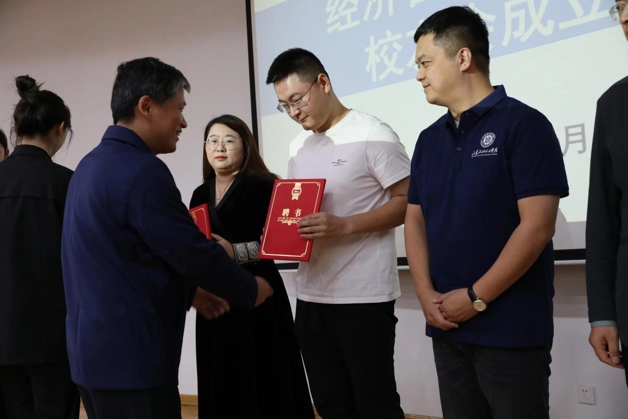 代立军为学院校友会会长、副会长、秘书长颁发聘书。