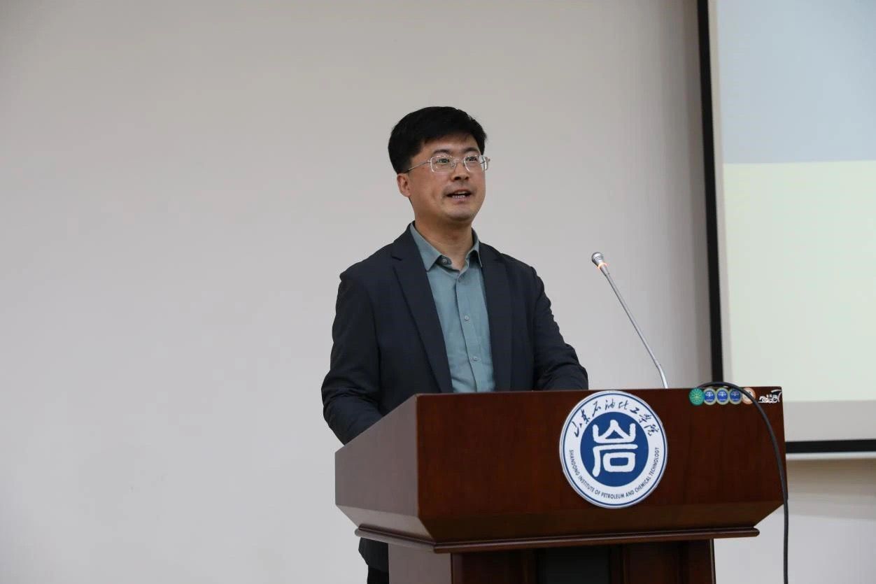 王家明宣读了《关于成立山东石油化工学院经济管理与文法学院校友会的通知》。