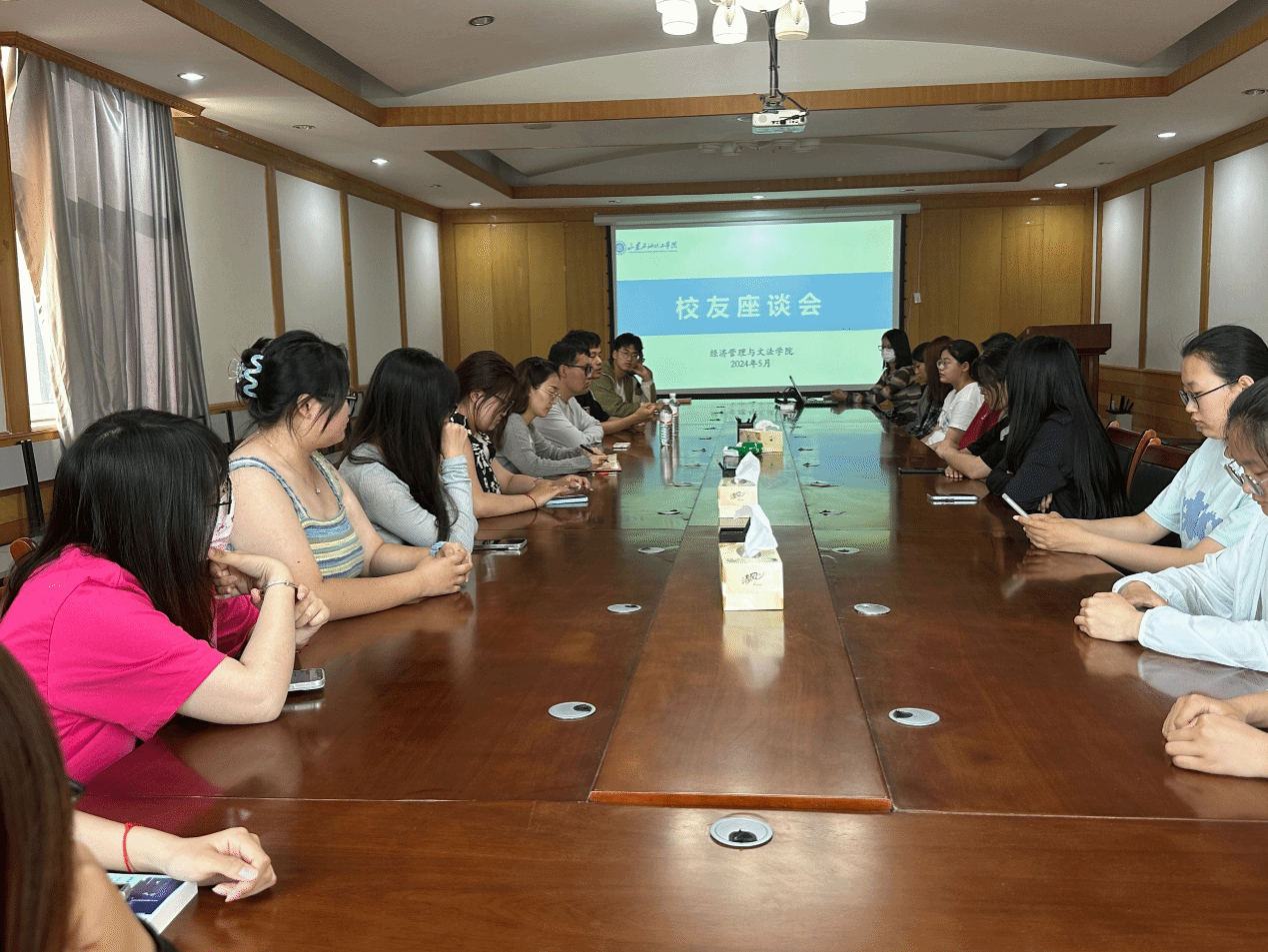 为进一步发挥优秀校友的榜样作用,引导广大学生学有所用、学有所长、志存高远,更好把握无悔的明天,5月10日下午,我院在经法楼209会议室举行了优秀校友经验交流座谈会。学院邀请了2019级优秀校友冯 驰程和苗放辉作分享报告,会议由学院团总支书记李昕如主持。