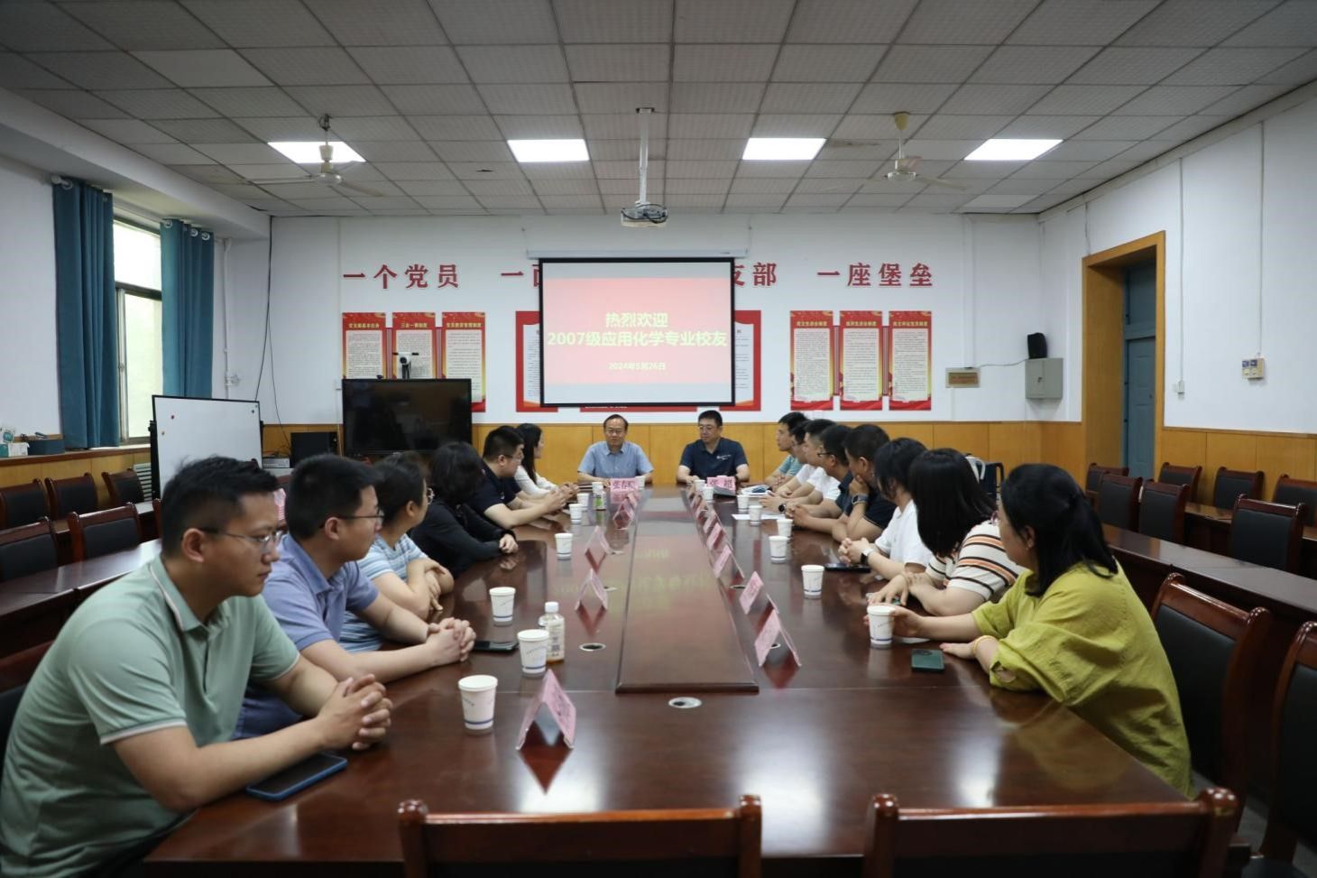 5月26日,化学工程学院07级应用化学专业校友返校交流活动在勘探馆4楼会议室拉开帷幕,党总支书记、分管日常工作的副院长张春晓,党总支副书记张超,辅导员老师李扬以及21名校友出席了本次活动。