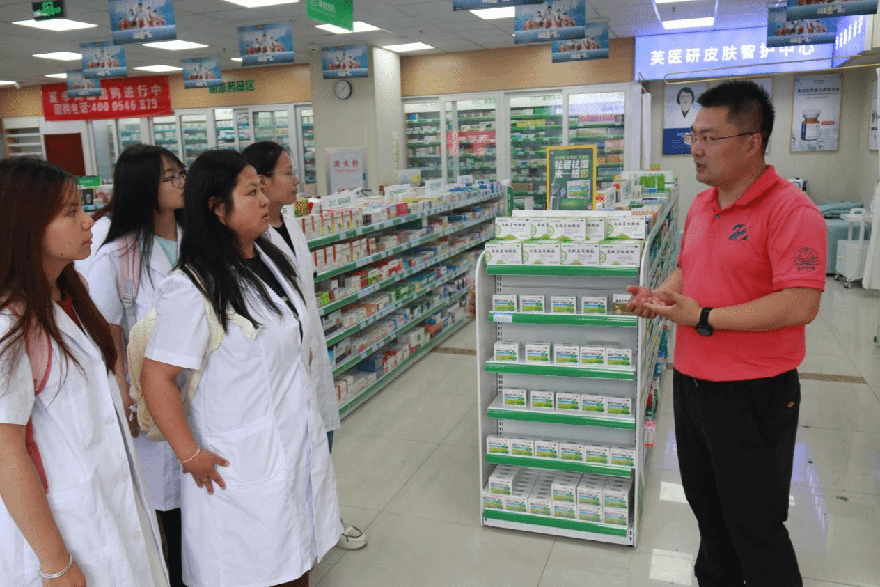 李超带领同学们参观公司总部与物流情况,并围绕行业前景、就业前瞻、个人发展、职业规划等方面为同学们讲解企业发展历程与态势。带领同学们认识药品的分类与作用,掌握药品的使用方法与相关不良反应。